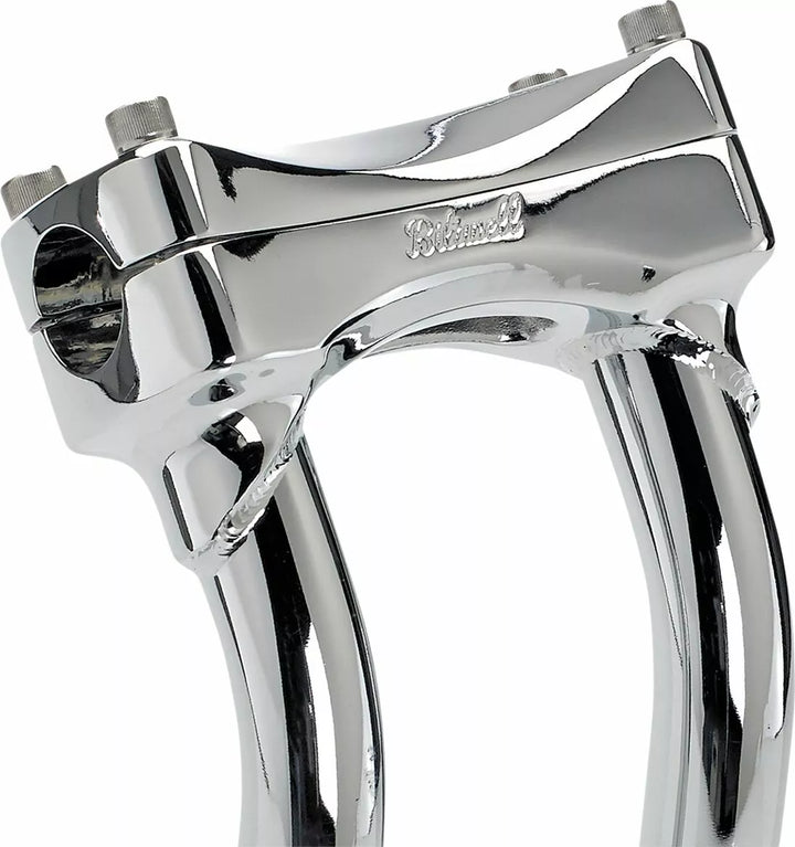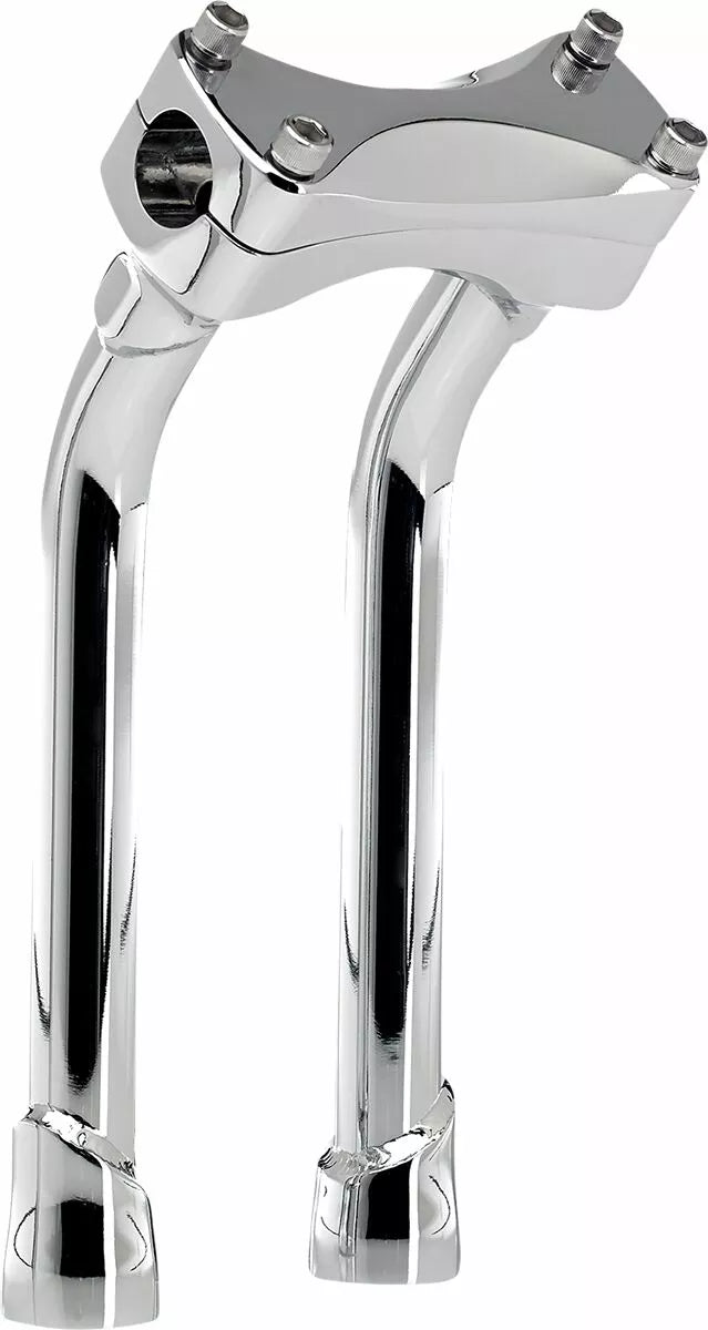 Investment-Cast One-Piece Steel Bar Clamp Accepts 1-1/8 "O.D. Handlebars, 0.120" (3 mm) Wall x 1 "o.d. 4130 Chromoly Uprights, CNC Lathe-Turned Mounting Base Accept 1/2-13 T.P.I. Stock Fit Most Stock and Select Aftermarket H-D Fork Trees, Pullback Murdock Risers Feature Mandrel-Bent Uprights for Two Inches of Rearward Bar Offset-perfect pentru reducerea atingerii pentru călăreți mai scurti, sudat TIG și lustruit manual înainte, hardware cu clemă de bare