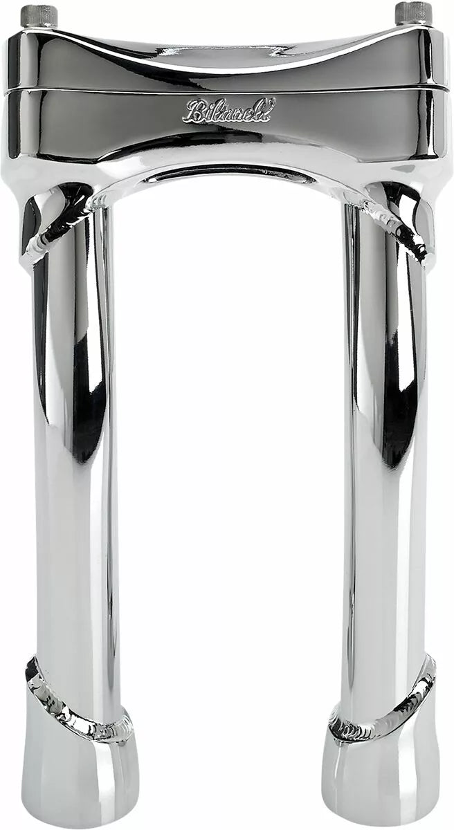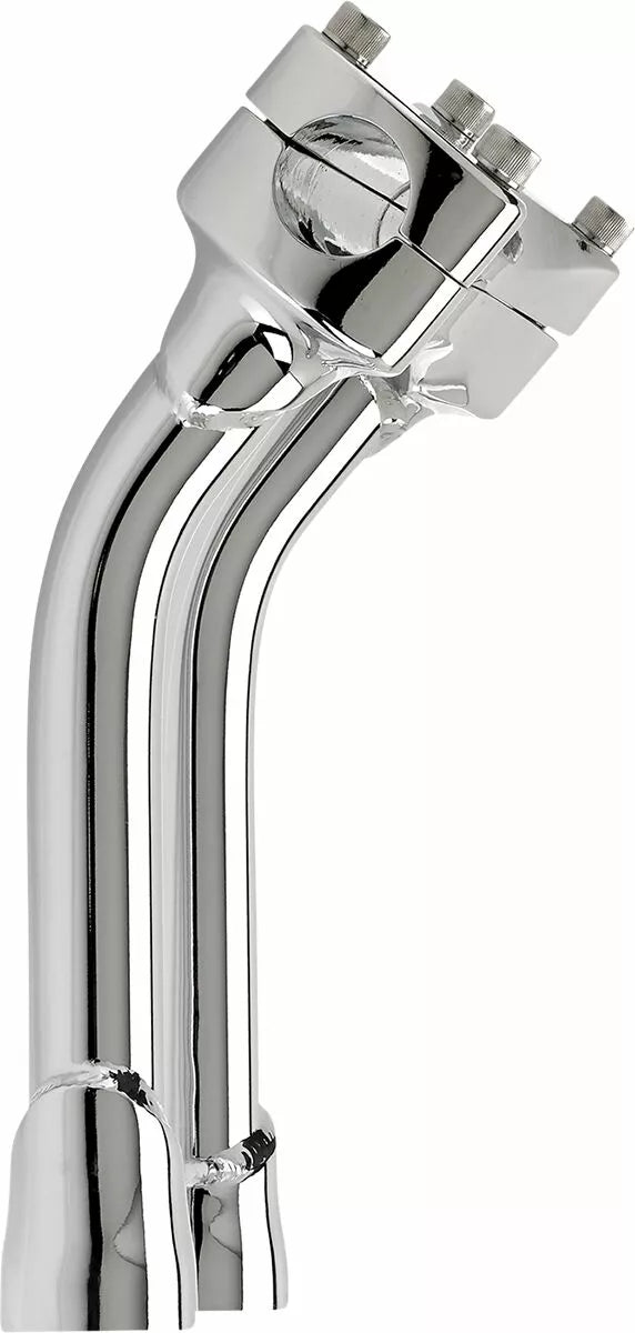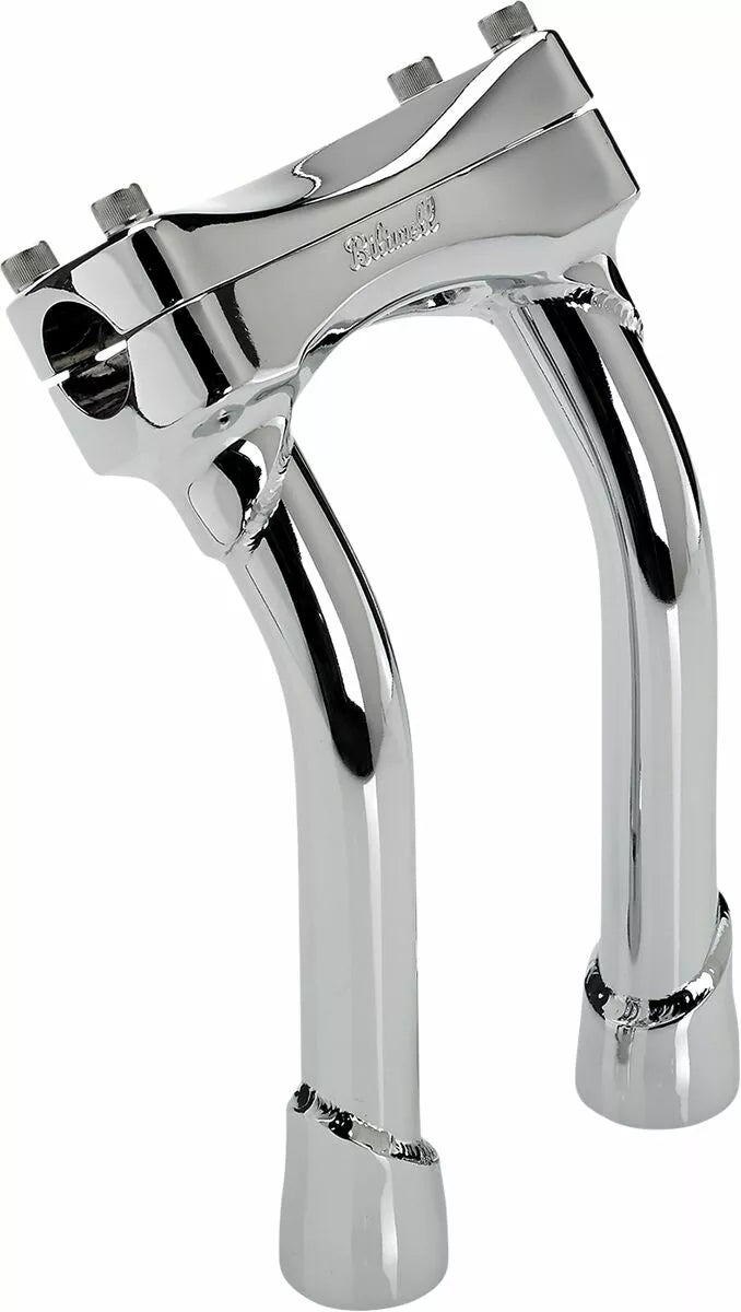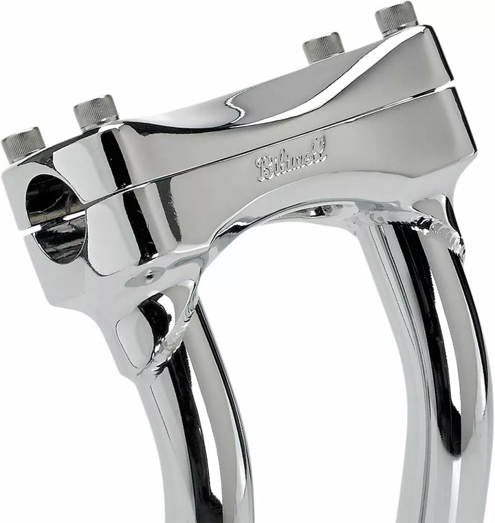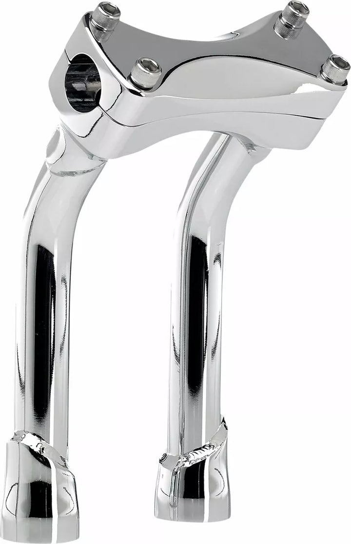Investment-Cast One-Piece Steel Bar Clamp Accepts 1-1/8 "O.D. Handlebars, 0.120" (3 mm) Wall x 1 "o.d. 4130 Chromoly Uprights, CNC Lathe-Turned Mounting Base Accept 1/2-13 T.P.I. Stock Fit Most Stock and Select Aftermarket H-D Fork Trees, Pullback Murdock Risers Feature Mandrel-Bent Uprights for Two Inches of Rearward Bar Offset-perfect pentru reducerea atingerii pentru călăreți mai scurti, sudat TIG și lustruit manual înainte, hardware cu clemă de bare