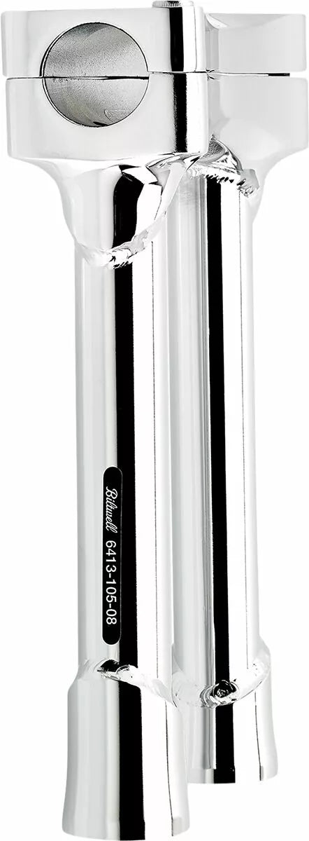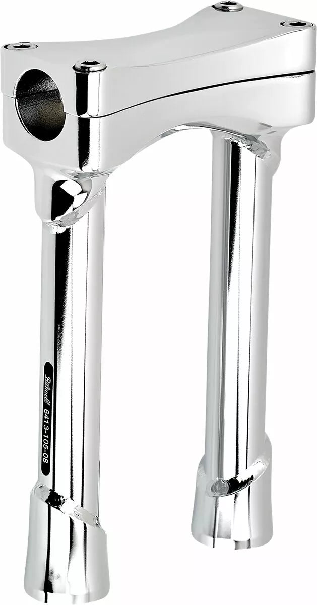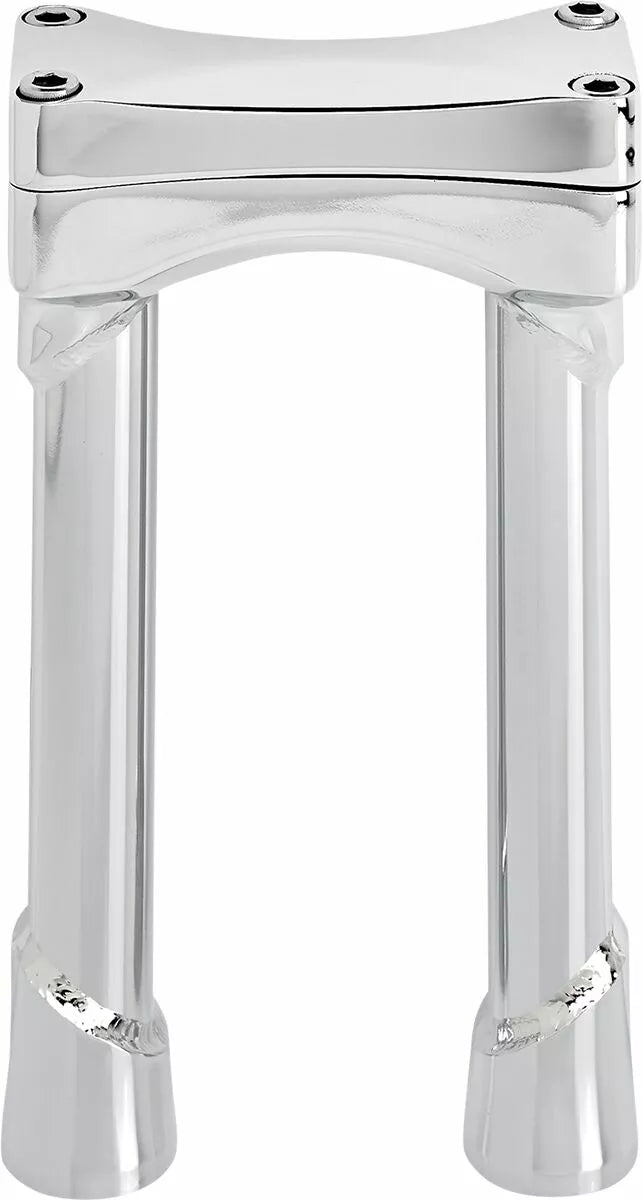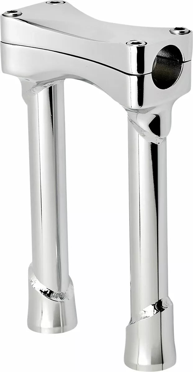 Investment-Cast One-Piece Steel Bar Clamp Accepts 1-1/8 "O.D. Handlebars, 0.120" (3 mm) Wall x 1 "o.d. 4130 Chromoly Uprights, CNC Lathe-Turned Mounting Base Accept 1/2-13 T.P.I. Stock Fit Most Stock and Select Aftermarket H-D Fork Trees, Pullback Murdock Risers Feature Mandrel-Bent Uprights for Two Inches of Rearward Bar Offset-perfect pentru reducerea atingerii pentru călăreți mai scurti, sudat TIG și lustruit manual înainte, hardware cu clemă de bare