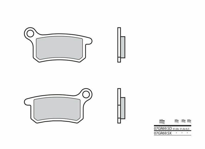 Aceste materiale sunt concepute pentru a garanta o eficiență maximă în diferitele condiții întâlnite în mod obișnuit în călărie off-road--nu doar rece și căldură, ci și un teren inospital (apă, nisip, noroi), unde brakement-ul. Având în vedere acest lucru, rezistența materialului la agenții de intemperii este deosebit de importantă. SX: Sinterizat off-road și supermotard. Un tampon agresiv notabil capabil să reziste la temperaturi ridicate, recomandat pentru motocross și supermotard. Performanță deosebit de constantă. Tipul plăcuței de frână: omologie de înlocuire: CE Material omologat: Metal sinterizat Utilizare: MX