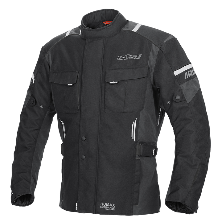 Buse Breno Pro este un sacou MC versatil și rezistent la intemperii, care oferă confort ridicat, siguranță și caracteristici practice pentru motocicliști. Cu impermeabilul său și ventilarea HUMAX®-KLIMAMBRAN Pe lângă o furaj de căldură detașabil, este adaptat atât pentru călătoriile scurte, cât și pentru lungi - indiferent de condițiile meteorologice.