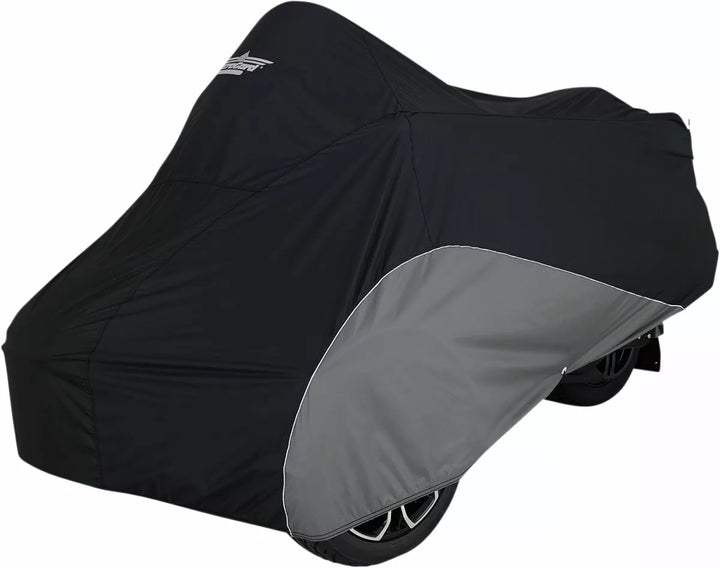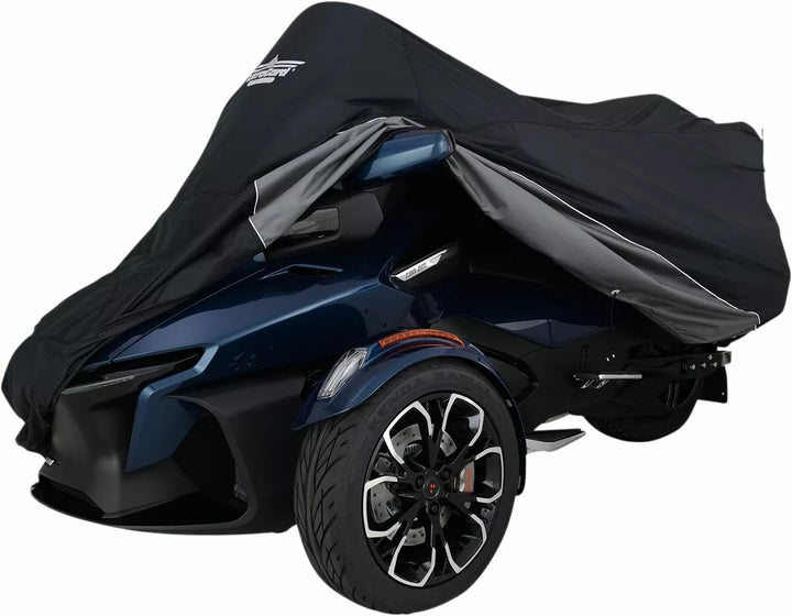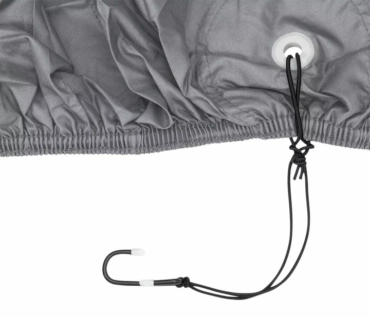 Proiectare potrivită, rezistentă la apă și vreme, Stabilizată UV pentru a reduce la minimum decolorarea culorilor, construcția de poliester ușor, cu poliuretan, scutul de căldură protejează împotriva conductelor de evacuare caldă și a aplicării imediate a capacului, a parbrizului extensibil