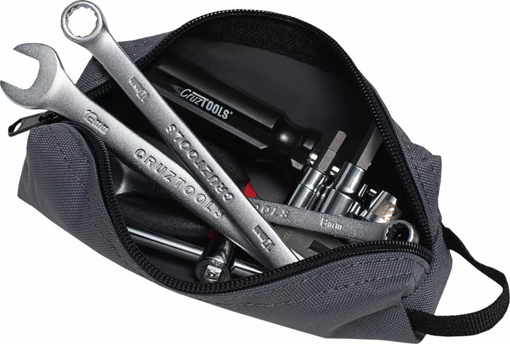Include cheii combinate cu dimensiuni complete, șofer pliabil cu mâner T, prize, biți Torx și hex, șofer cu șurub 5 în 1, clește cu nasul cu ac, sârmă mecanică și o pungă cu fermoar durabil, compactă la 2 "x 2" x 7 "pentru o garanție ușoară, ideală pentru reparații și reglaje de traseu.