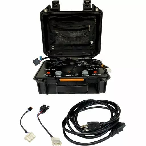 Cazul de testare a produsului Custom Dynamics® este o necesitate în orice magazin de dealership sau de motociclete; Eliminați lucrările de ghicire în creanțele de garanție a clienților și depanarea produselor cu acest kit complet de testare, pre-conectat și echipat cu mufe pentru conectarea produselor Custom Dynamics® cele mai populare produse de iluminat cu LED-uri; De asemenea, are conectori de terminal ușor de utilizat pentru produsele de cablare universale, această carcasă compactă se conectează la un recipol electric pentru energie și are întrerupătoare de moment de frână și semnal de rotire pentru testarea tuturor funcțiilor de produs aplicabile, comutator de alimentare, comutator de momentan de frână și viraj, include 2 adaptoare de sârmă pentru potriviri extinse, adaptor de alimentare inclus
