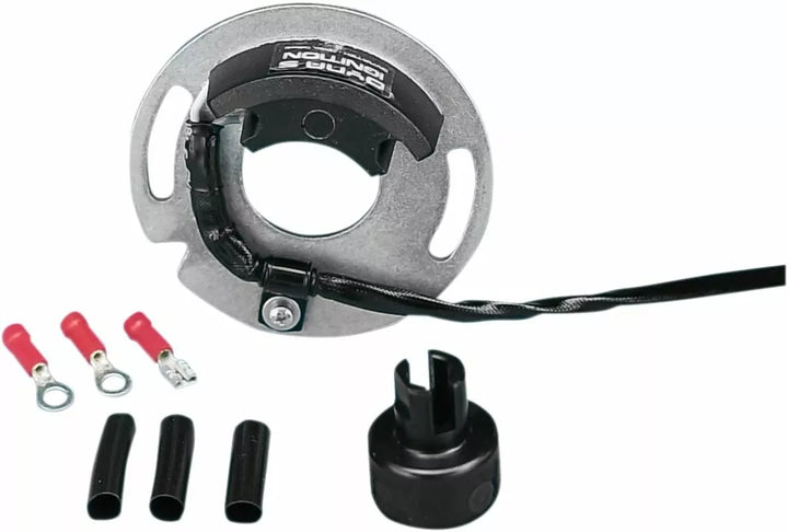Sistemul de aprindere auto-conținut oferă senzori magnetici cu efect Hall, care nu sunt sensibili la schimbările RPM sau afectate de murdărie și ulei, îmbunătățesc performanța generală prin schimbarea calendarului mai puțin de trei trei grade, extinde durata de viață a dogului și elimină utilizarea și elimină utilizarea și elimină utilizarea și elimină. Folosit și aprobat de mulți curse de campionat, realizate în S.U.A., operațiunea cu sistemul de aprindere a Dyna necesită utilizarea unei bobine de 5 ohm, cum ar fi partea # DC7-1 sau o bobină de puncte de stoc de la loparea timpurie. Nu este recomandat pentru funcționarea cu bobine OEM.