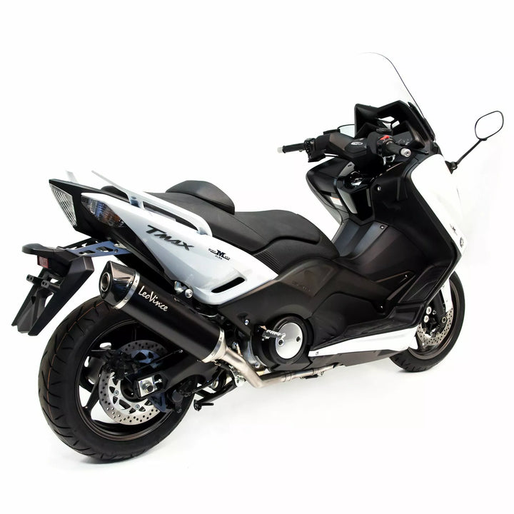 Sistemul de evacuare Nero, stil agresiv și linii ascuțite. Acoperire clară pentru rezistență la UV, vopsea neagră pe bază de ceramică metalică, finisare mată, logo-ul Leovince gravat cu laser