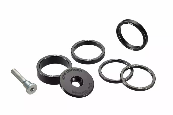 Nivelați -vă plimbarea cu e*treisprezece șepci de top și căști pentru căști! , Reduceți greutatea și adăugați stil de înaltă calitate în timp ce reglați-vă fin. , Experimentați o rezistență și performanță crescută cu capacul superior din aliaj anodizat și șurubul 7075 AL. , Capacul de top ușor, cu profil scăzut, se integrează perfect cu e*treisprezece tulpini, dar este la fel de acasă pe majoritatea tulpinilor de pe piață. , Șuruburile sunt strălucitoare anodizate în culori pentru a se potrivi cu e*treisprezece tulpini și alte componente. , Hardware T25 înseamnă ajustări cu un singur instrument din orice parte a ansamblului dvs. de bare/tulpină/tulpină. , Dimensiune: 34,8 mm Diametru., Greutate: 33g/kit., Domeniul de livrare: capac superior, șurub de direcție, 1x10mm, 2x5mm și 2x3mm distanțe de cască din aliaj anodizat negru.