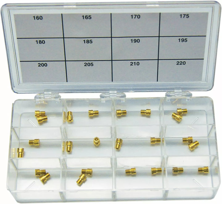 Kit include două jeturi de următoarele dimensiuni: 160, 165, 170, 175, 180, 185, 190, 195, 200, 205, 210 și 220, jeturile sunt calibrate cu flux pentru un debit de combustibil extrem de precis, carburator de alamă de înaltă precizie