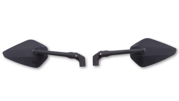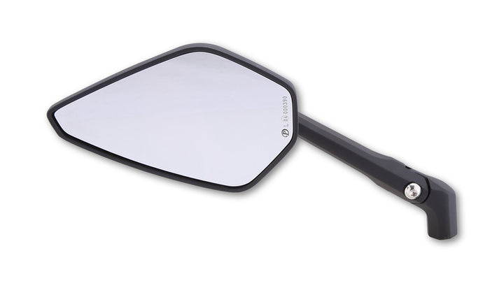 Braț oglindă reglabil în aluminiu anodizat negru mat cu mâner reglabil și sticlă convexă. Datorită utilizării unei a doua îmbinări pe mâner, există posibilități suplimentare de ajustare pentru siguranța dvs. Include adaptor suplimentar M10 x 1,25 mm cu fir din stânga pentru Yamaha, aprobat E.