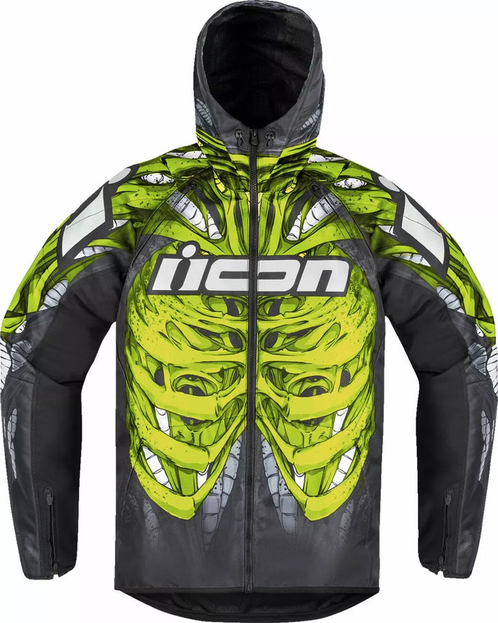 Grafică AirForm Manik'r ™ pe față și în spate a sacoului, șasiu de poliester 420d cu 300D poliester intern, material de coajă acoperită cu PU cu finisaj DWR, protector VIPER D30® detașabil; Protectoare cu impact cu cot și umăr, capotă de remiză în stilul cordonului, panoul de plasă din față Airfly ™, cu aerisire cu piept și spate cu fermoar, fermoare cu manșetă, protector spate EN 1621-2 Nivel 1