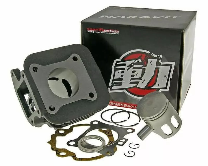 High-Torque Naraku cylinder kit that is very practice for everyday use, this cylinder kit is not designed to be revs, but rather it shows its strengths in the lower range, just above the idling speed comes comes solid, constant and verry string and very string and very string and very very string and VITTANT COMS UNNECESSARILY HIGH Engine Speeds, The Power Output From Standing Make for Very Good Starting and Traffic Light Getaways, and "Hill Climbing" is Made Easier, Even with Plină! Sunetul este destul de standard, acest cilindru extrem de potrivit pentru utilizarea de zi cu zi, deoarece îmbunătățirea performanței poate fi obținută folosind sistemul de evacuare original, compatibil pentru sistemele de evacuare originale și sportive, trebuie să crească [+7% până la 10%]