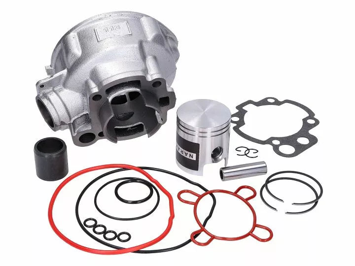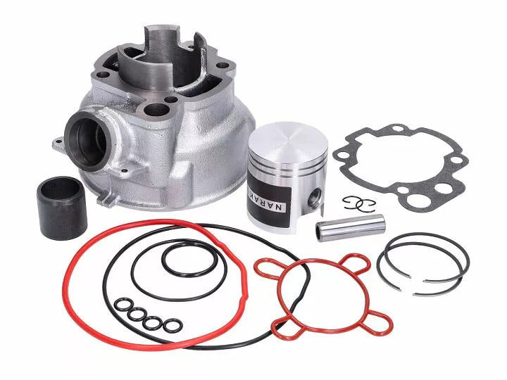 The Long Sample 70cc Naraku cylinder kit in the new v.2 version with adjustments that make this cylinder kit even more suitable for everyday use, the mold was adapted to the original minarelli cylinder, the "113" designation is cast in and there cylinder is the cylinder cylinder was painted in the factory cylinder Silver color, The Gasket Kit now includes all necessity Gaskets to fit the kit on euro 1 Pentru modelele Euro 4, garniturile nu sunt necesare pur și simplu omise în timpul instalării, acest lucru face ca acest cilindru robust de 70 cm Naraku Sports, este recomandat atât pentru sistemele de evacuare a seriei, cât și pentru cele de evacuare sport, cu adaptorul inclus, toate galerele cu 25 mm sau 28mm pot fi montate. If the original carburerettor remains installed, it is highly advisable to increase the carburettor jetting by about 7-10%, we recommend to use a sport carburerettor (19mm), The cylinder is designed for original cylinder head use, howver, a separately avalable special 70cc Naraf