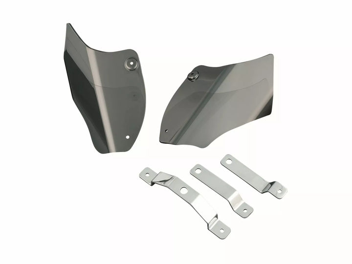 Scuturile de policarbonat montat pe FRAM ajută la baterea căldurii motorului, la disiparea și redirecționarea căldurii motorului departe de călăreț, faceți călărie în acele zile călduroase de vară, suportabile, reflectorizante, vândute în perechi