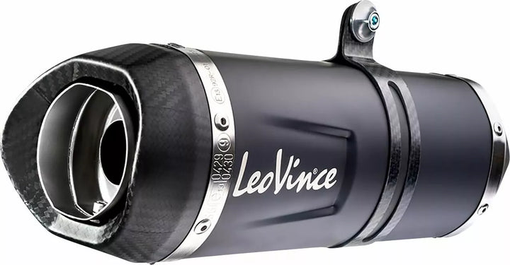 LV One Evo Black Edition, LV One Evo Black Edition Oțel inoxidabil este sinteza dintre tradiție și modernitate., Combină aspectul și inovația stilului clasic Leovince în cercetarea celor mai performante și ușoare materiale. Finisare mat, ambalare rezistentă la temperatură ridicată (1.650 ᄚ F), curea completă de post de carbon, logo -ul Leovince gravat cu laser