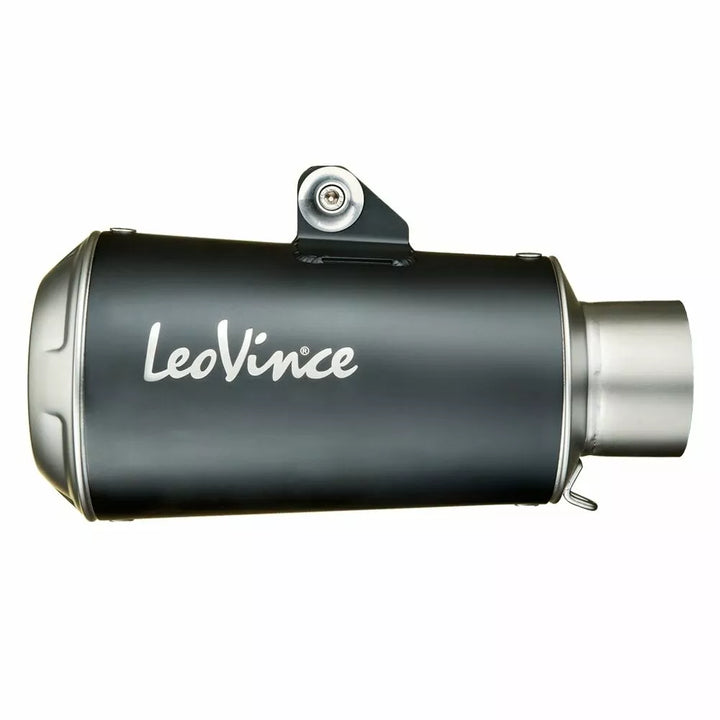 LV-10 Black Edition Slip-On Muffler SS cu ADN de curse, cu ediția neagră, Leovince prezintă o nuanță minunată de negru pentru a-ți îmbrăca motocicleta în: o vopsea pe bază de ceramică și rezistentă la temperaturi ridicate dedicate iubitorilor de tonuri agresive. Vopsea neagră pe bază de ceramică, cu un finisaj mat, plasă din oțel inoxidabil din spate, logo-ul Leovince gravat cu laser, suportul tăiat cu laser, bastoane „LV” rezistente la temperaturi ridicate incluse în cutie