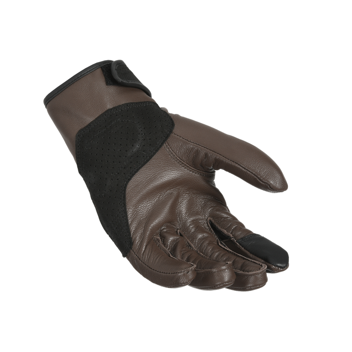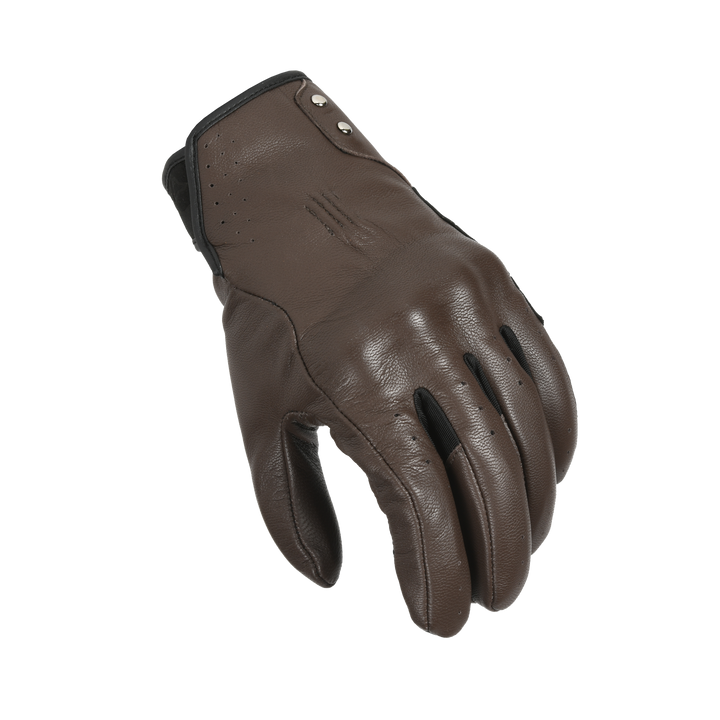 Macna cu mănuși de motocicletă, femeie necinstită maro