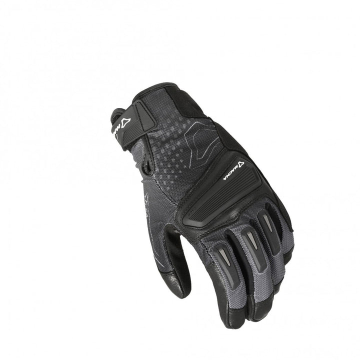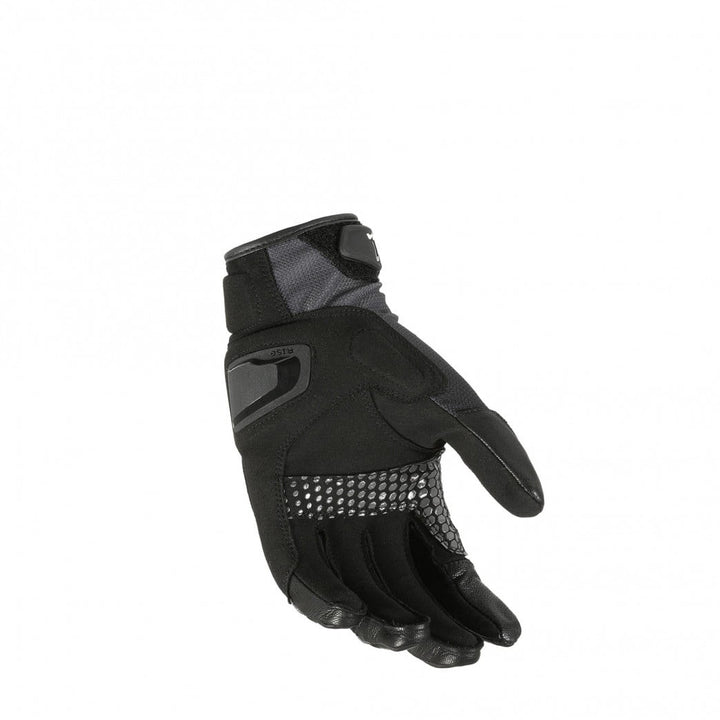 Există o presiune de prindere pe interiorul mănușii, oferindu -vă o strângere suplimentară asupra mânerelor de pe motocicletă. În plus, mănușa are protecție TPR pe noduri și degete, precum și R.I.S.C. și Protecția EVA pe palmă.