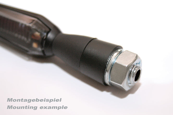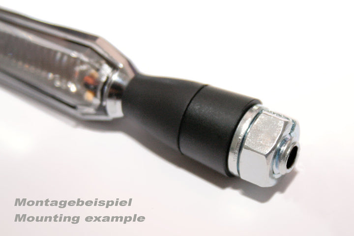 Mânecă de distanțare din aluminiu pentru aproape toți indicatorii cu un șurub filetat M8 de la Highsider. Un slot în mânecă facilitează trecerea cablurilor. Poate fi utilizat EIter ca o extensie de semnal de întoarcere sau ca distanțier dacă șurubul filetat de pe suportul lămpii ar trebui să lovească interiorul casei lămpii care o fixează pe suportul lămpii.