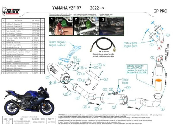 GP Pro, fabricat de sudarea TIG semi-handmade, prezintă un design compact și esențial și un sunet agresiv. Inspirată de lumea concurenței, conducta de evacuare este echipată cu o grilă de protecție detașabilă care ascunde db-guy-ul. Această mufler oferă logo -ul caracteristic MIVV creat de Laser Technology.