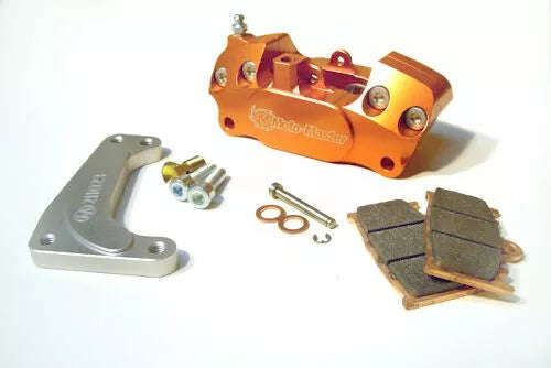 Echipamentele Supermoto de înaltă performanță Moto-Master utilizează un design cu 4 pistoane și au fost dezvoltate special pentru cursele de supermoto, complet prelucrat cu CNC și anodizat portocaliu, această configurație permite utilizarea cilindrului principal de stoc să fie retrăgită, trebuie să fie utilizate cu un bracket de motociclete 320mm și rotirea de rasă de montare.
