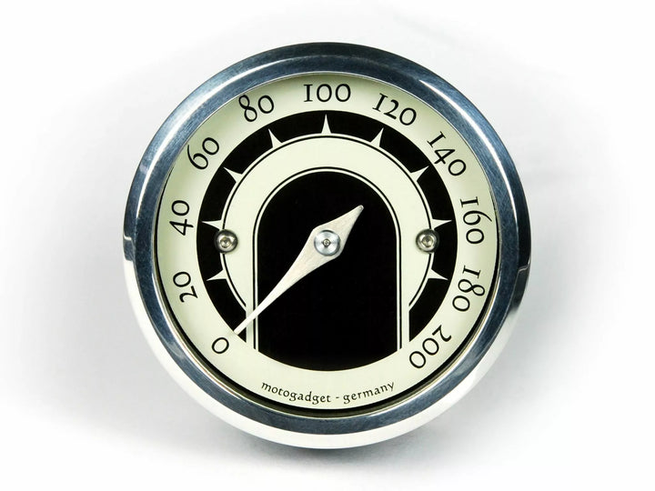 Speedometre analogice mici (49 mm) cu o veche școală, stil retro bazat pe designul fluxului din anii 40 și 50 '