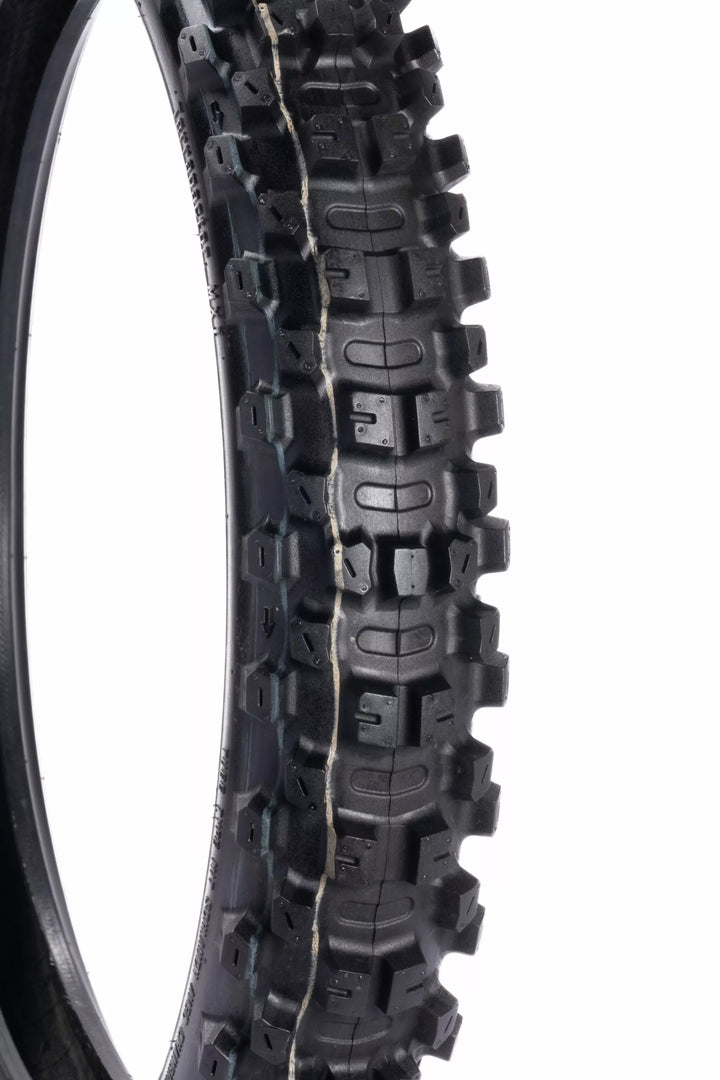 Cea mai recentă completare a gamei de anvelope Motoz MX este TerraPactor MXI (MX Intermediate) Anvelopa de competiție. Proiectat cu o carcasă ușoară și proiectat pentru a excela pe teren intermediar până la dur (amestec de sol liber și ambalat, sol ambalat tare și rute grele profunde). Expertina de referință pentru performanța anvelopelor MX pe mai multe tipuri de teren! Prin încorporarea strategică a punctelor de flex în carcasă și butoane, anvelopa MXI oferă predictibilitate și o strângere de colț îmbunătățită, adaptând și flexând în funcție de teren pentru a oferi un control și încredere mai mare în timpul călăriei. Sol ambalat greu și rute grele profunde), o gamă completă de la mini-încrucișare la biciclete mari (15 dimensiuni diferite), două dimensiuni de anvelope frontale, 80/100-21 pentru cele mai agresive în ceea ce privește performanța pe pistă și noua 90/100-21, cu un profil mai înalt pentru zonele unice de flexie unice încorporate în carcase și butoane pentru a îmbunătăți senzația de senzație și de control, flexi Construcție laterală pentru o conformitate îmbunătățită