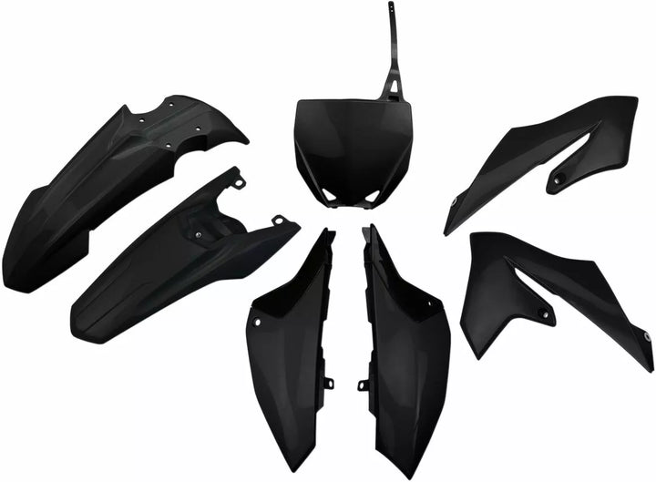 Piesele pre-găurite se montează cu ușurință la locațiile de stoc, kitul de caroserie include apăsare față și spate, capace radiatoare, panouri laterale și placă de număr din față; OEM se potrivește cu culoarea bicicletei de stoc, instalarea ușoară cu șuruburi