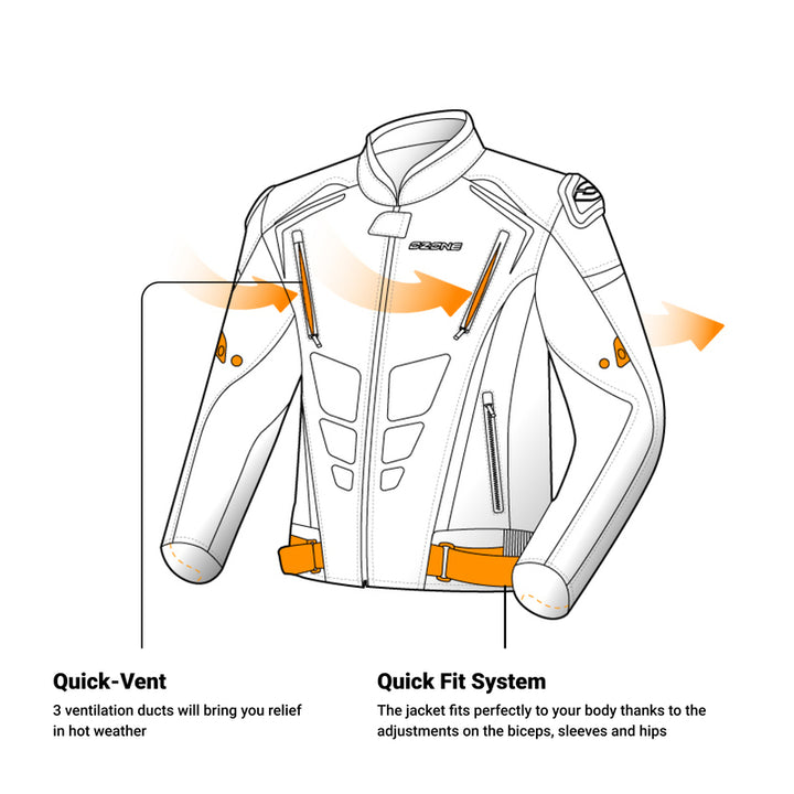 - Scurtare și 360 ° Conectarea fermoarului -Abilitatea de a atașa sacoul la pantalonii de motocicletă