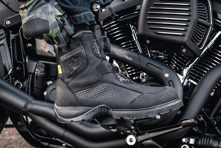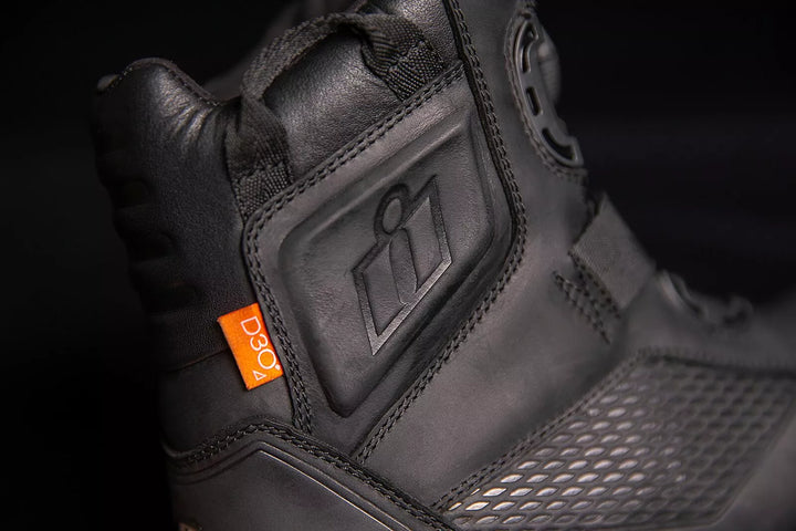 Upper din piele premium prezintă un finisaj rezistent la apă, un eveniment respirabil, garniturile impermeabile ajută keet-ul uscat, cu ulei de cauciuc rezistent la un ulei/ rezistent la alunecare, oferă performanțe de motocicletă maximă, Insole de poliuretan cu celule deschise, ba. Fit confortabile, inserțiile D3O® dual asigură acoperire a gleznei, capace de la cauciuc armat, accente de călcâie reflectorizante și nuburi de interfață schimbătoare