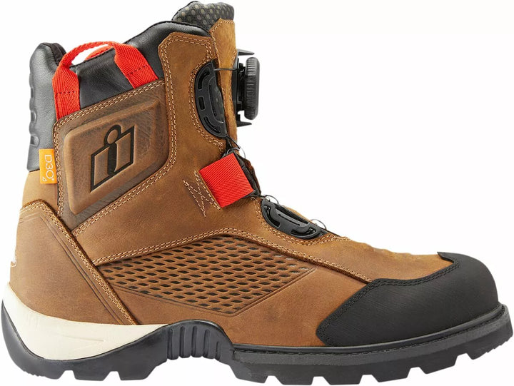 Upper din piele premium prezintă un finisaj rezistent la apă, un eveniment respirabil, garniturile impermeabile ajută keet-ul uscat, cu ulei de cauciuc rezistent la un ulei/ rezistent la alunecare, oferă performanțe de motocicletă maximă, Insole de poliuretan cu celule deschise, ba. Fit confortabile, inserțiile D3O® dual asigură acoperire a gleznei, capace de la cauciuc armat, accente de călcâie reflectorizante și nuburi de interfață schimbătoare