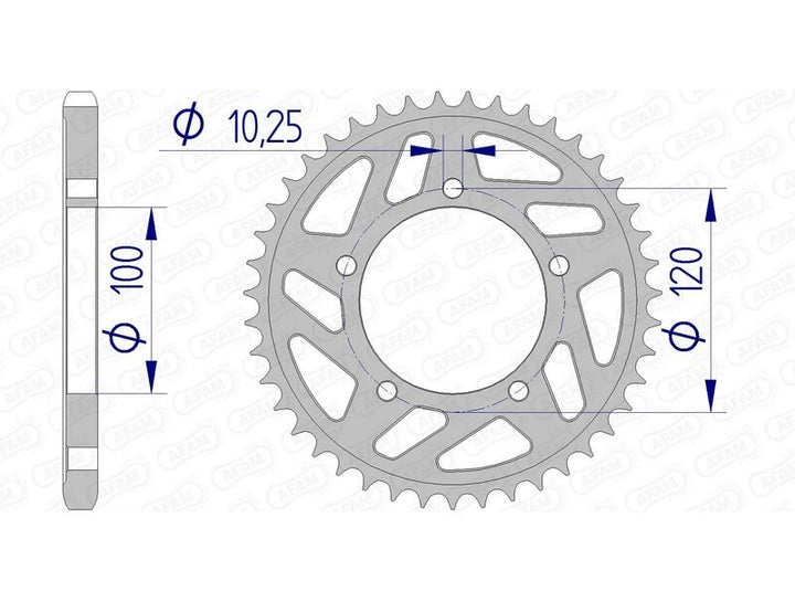 Angrenajele coroanei din aluminiu afam sunt confecționate dintr -un aliaj atât ușor, cât și dur. Calitatea prelucrării și precizia tăierii fac ca AFM să fie un standard la nivel mondial pentru piesele de transmisie a motocicletelor. Racing Aluminum Crown Gear Ultra-Light, cu o anodizare dură rezistență forțată la finisare liberă și de topire și de calitate pentru calitatea competitivă Chain_pitch: 525.0 Material: Aluminum RART_TEET_TEETH_CON RARAD_PROET_SSIN