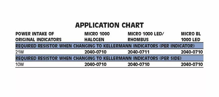 , Atunci când utilizați Micro 1000 DF și un bec de control al luminii, un rezistor suplimentar la 33 ohm (partea #2040-0712) pentru lumina din spate și un rezistor suplimentar la 7,5 ohm (partea #2040-0711) pentru lumina de frână.