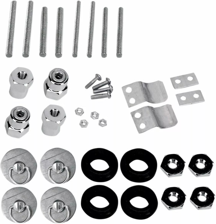 Postările de andocare și elementele de fixare înlocuiesc șuruburile de la Fender Strut și vă permit să vă puneți sau să scoateți genți de șa cu o răsucire rapidă a elementelor de fixare QTL (sfert de blocare a sfertului); Include patru postări de andocare cu elemente de fixare, distanțiere, grâuri de șa, clipuri de suport, piulițe/șuruburi/elemente de fixare necesare și instrucțiuni, kitul de andocare ar trebui să fie utilizat în combinație cu Saddlemen Saddlebag Support Brack; Poate fi utilizat pentru a monta OEM H-D și H-D accesoriu pentru șa (cu excepția pungilor 1200) fără a cumpăra un suport suplimentar