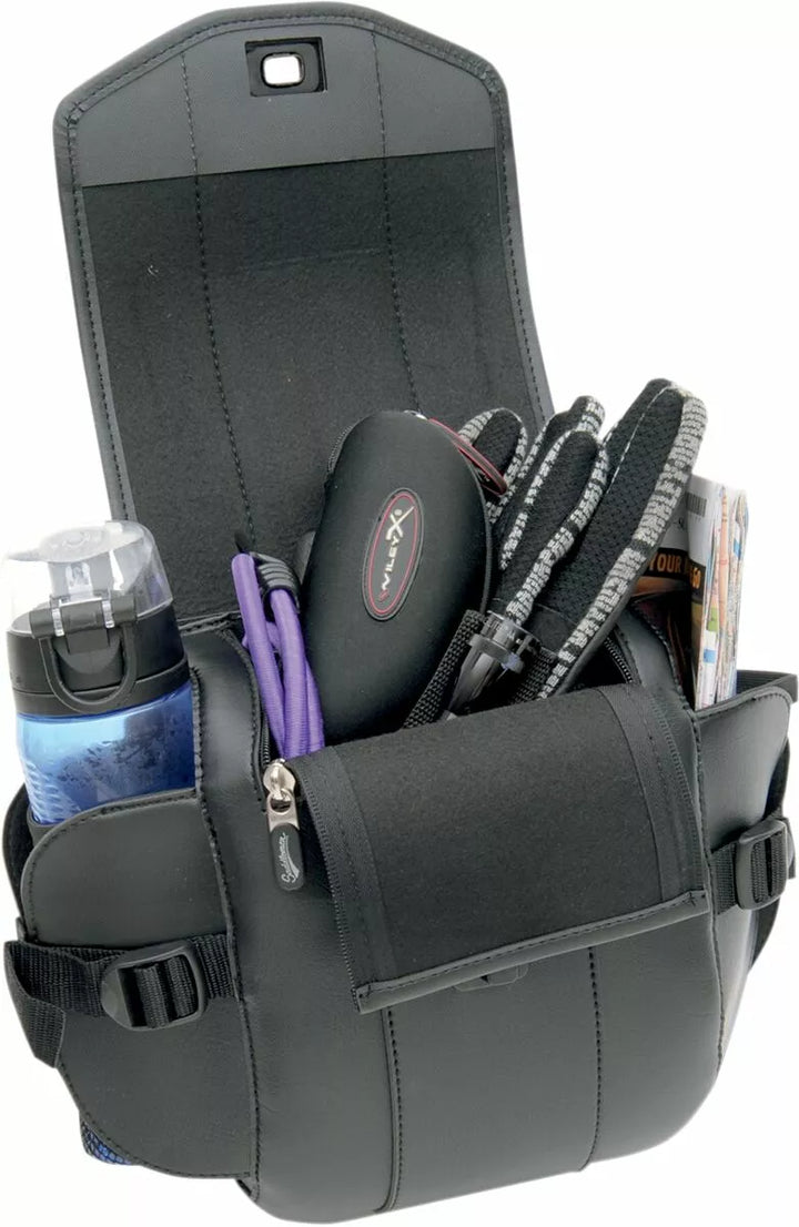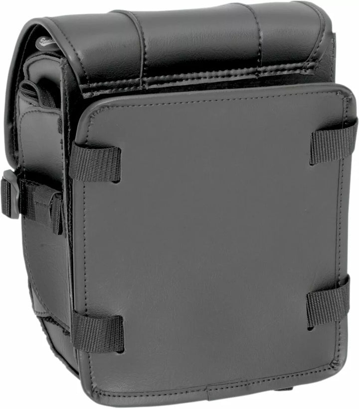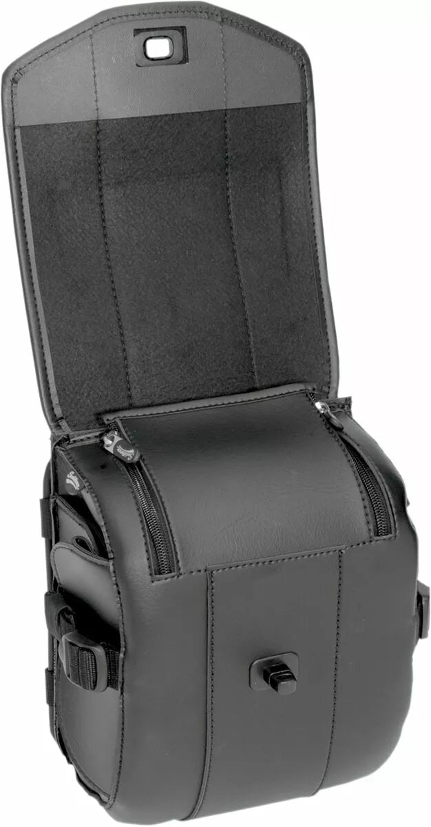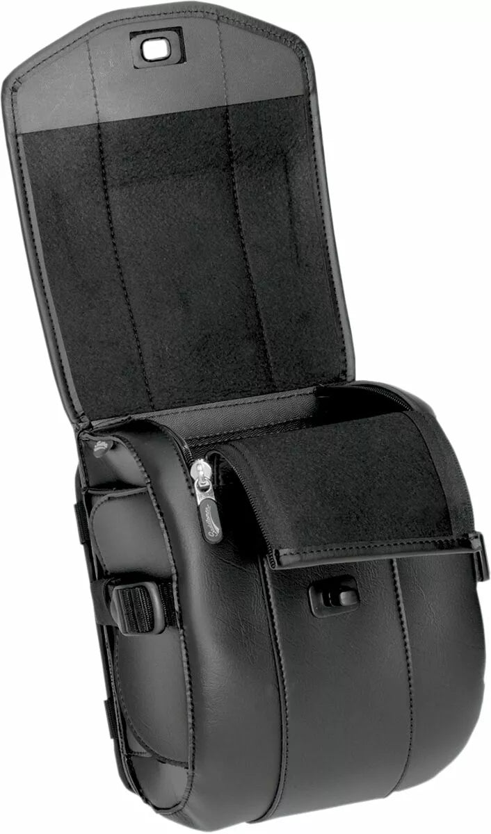 LEADING-EDGE Style and Construction Matches A Variety of Motorcycles From Customs to Performance Cruisers, Leather-Grained UV and Weather resistant 3mm Thick Saddlehyde ™ Materials with Sturdy Internal Reinforcing Hold to prote Zippered Opening Covered by Weather Flaps Fitted With ¼-Turn Hasps That Accept Mini-Padlocks For Security, Spacious Main Compartment Supplemented With Two Fold-Away Mesh Beverage Holders That Can Hold Water Bottles, Eases, Ochelarii și MUC mult mult curele de montare pentru a vă înfășura în jurul barei dvs. Sissy, dar pot fi, de asemenea, montate greu la alte articole, cum ar fi tamponul de spălare, măsoară: 8 "L x 4¼" H x 11 "W