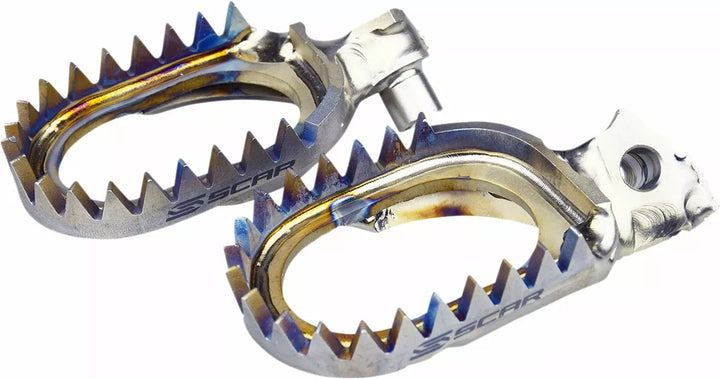 Titan de calitate aerospațială și sudare puternică., Corpul piciorului are o lățime de 60 mm., Cu 10 mm mai lat decât OEM., Ultra-greutate ușoară la aproximativ 300g pe pereche, calitate premium și performanță ridicată.