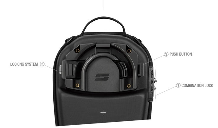 Pe lângă faptul că este ușor de utilizat și ușor de integrat în motocicletă, acesta prezintă un fund push care permite deblocarea rapidă a pungii, pur și simplu apăsând în jos pe ea. Culoare: Material negru: aluminiu
