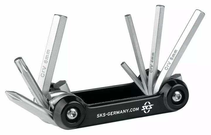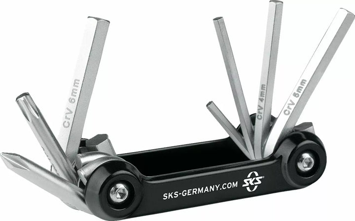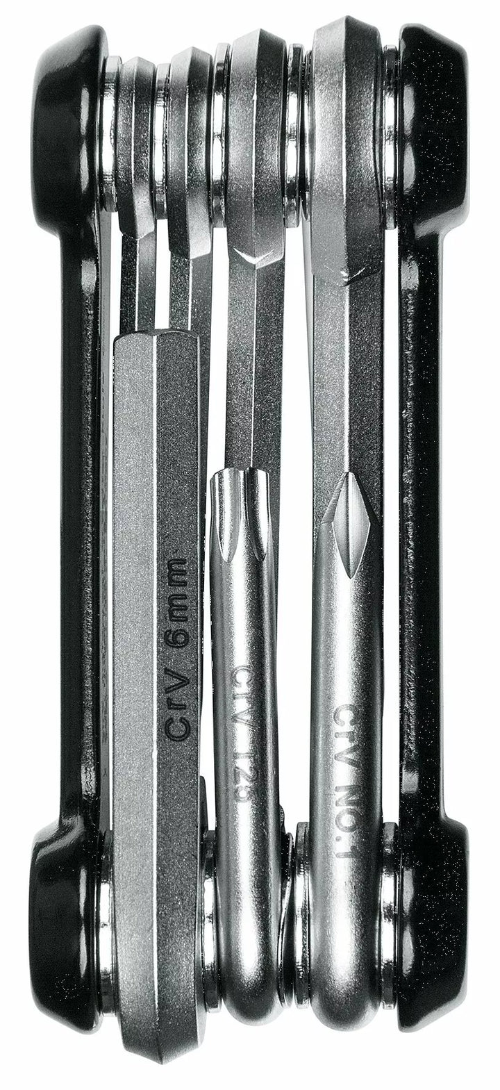Instrumentul Slim Tom 7 Mini realizat din oțelul de vanadiu crom inoxidabil combină cele mai importante funcții ale instrumentului într -un design extrem de compact., Cu cele 7 funcții integrate, cum ar fi o cheie Allen, șurubelniță și cheie Torx, multe reparații la bicicletă. , Instrumentul polivalent poate fi depozitat în mod convenabil în geanta de neopren furnizată.