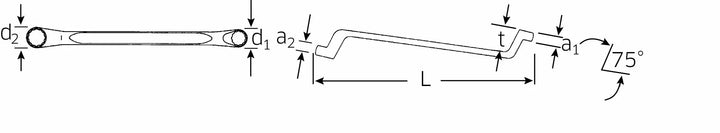 Stahlwillastabil® Offset, DIN 838/ISO 10104 (dimensiuni metrice), oțel din aliaj crom, placat crom, măsurare:, deschidere de spanner mm: 8 x 10, l mm: 180, d1 mm: 13,1, d2 mm: 15,8, a1 mm: 7, a2 mm: 9, t mm: 21, greutate g: 61: 7, a2 mm: 9, t mm: 21, greutate g: 61