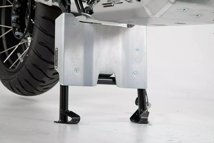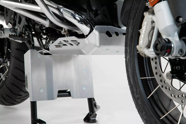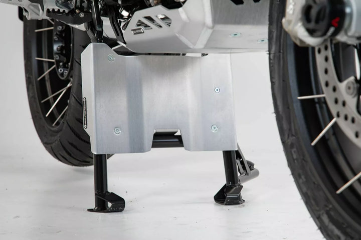 Extensia de protecție a motorului protejează zona frontală a blocului motorului de jetoanele de rocă, fabricată din aluminiu periat și acoperit cu putere, extensia poate fi montată pe cont propriu sau pe lângă o protecție a motorului SW-Motech, bloc de motor de protecție din 3 piese cu până la 130 mm, inclus în livrare, materiale de montare, instrucțiuni de montare, instrucțiuni de montare, instrucțiuni de montare
