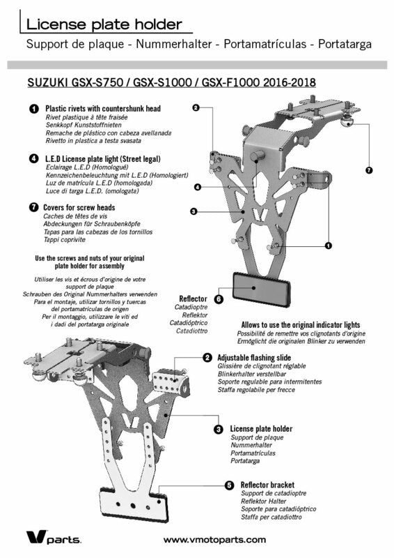 V Piese de înmatriculare Piese Suport negru Suzuki GSX-S750/1000 C8-SPS005