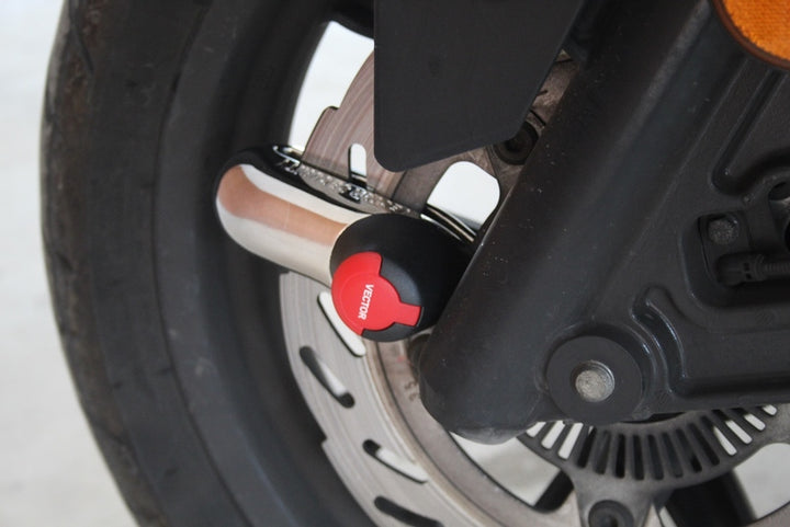 Vector Block One este un blocare durabilă și fiabilă a frânei cu disc, făcut în Oțel monobloc tratat termic pentru Protecția maximă împotriva furtului. Cu unul Șurub de blocare de 10 mm și mecanism de blocare automată, este acest blocaj Ușor de utilizat și oferă o protecție puternică pentru motociclete și scutere.