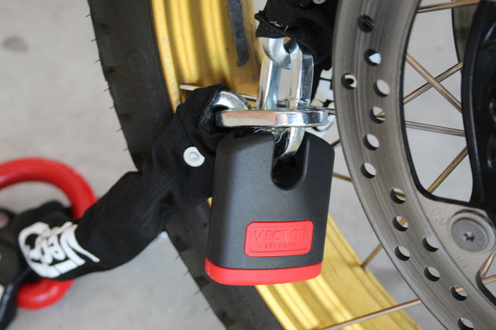 Vector Pro Lock Lock este unul Soluție de blocare robustă și sigură, conceput pentru a proteja motocicletele, bicicletele și alte vehicule. Cu unul lanț de oțel întărit și un lacăt puternic; combinat Forță și flexibilitate pentru o blocare sigură în diferite medii.