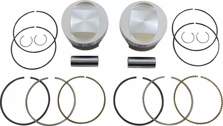 Forged Piston Crown with Genrous Valve Pockets for Big Valves and Cams, Precision-Fit Rings Selected for Each Application for Ultimate Sealing, Force-Fed Pin Oiling Provides Enhanced Lubrication of the Piston Pin, Power Power Lights, Ring Linduces Rima, Coating Reduces Friction, Providing Quiester Operation and Improving Scuff Resistance, Valued-Packaged with Two Pistons, Rings, Piston Pins and Circips, Pistonul este făcut în SUA