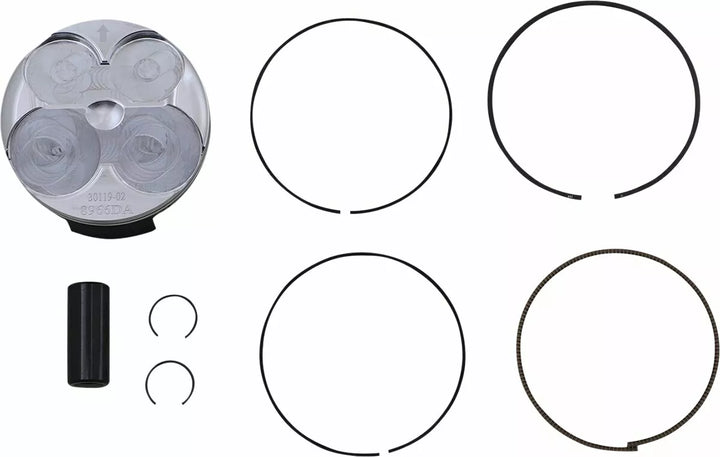 Sloturi de ulei îmbunătățite cu piston, prelucrare a șefilor radiali și caneluri de anoular pentru un lubrifiere îmbunătățită a pinului la încheietura mâinii, piston ușor, cu o gardă strânsă a peretelui pistonului pentru un motor care funcționează liniștit, fustă acoperită pentru reducere și implicare și etanșare improvd și control de ulei, design de forjare cu pumn dublu, unde se remarcă, Kit include piston, verighete, pinuri de mână și blocaj pin la pin