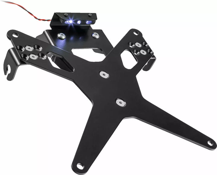 Deținătorul plăcuței de înmatriculare este extrem de durabil și este rezistent la intemperii, acoperit cu pulbere neagră. , Suportul plăcii de înmatriculare poate fi utilizat pentru orice fel de plăcuță de înmatriculare (lățime de 175 mm)., Nu este necesară o modificare a cadării., Reglarea fără trepte a unghiului de grebă., Suportul indicator reglabil în 3 poziții. Placă., Montele de lumină speciale (vândute separat) necesare pentru luminile indicatorului de stoc., Kit include: 1 suport pentru plăci de înmatriculare incl. Kit de montare. Suport., Lumina din spate cu suport. Disclaimer: Important: Pentru utilizarea acestui suport pentru plăcuțe de înmatriculare cu semnalele de transformare a OEM ale modelelor Ducati (2015 - prezent) este necesar un suport special (Zieger Turning Semnal Adapter și Duc. Parts Europe Număr de piesă: 20301971. Număr vânzător: 10005790).